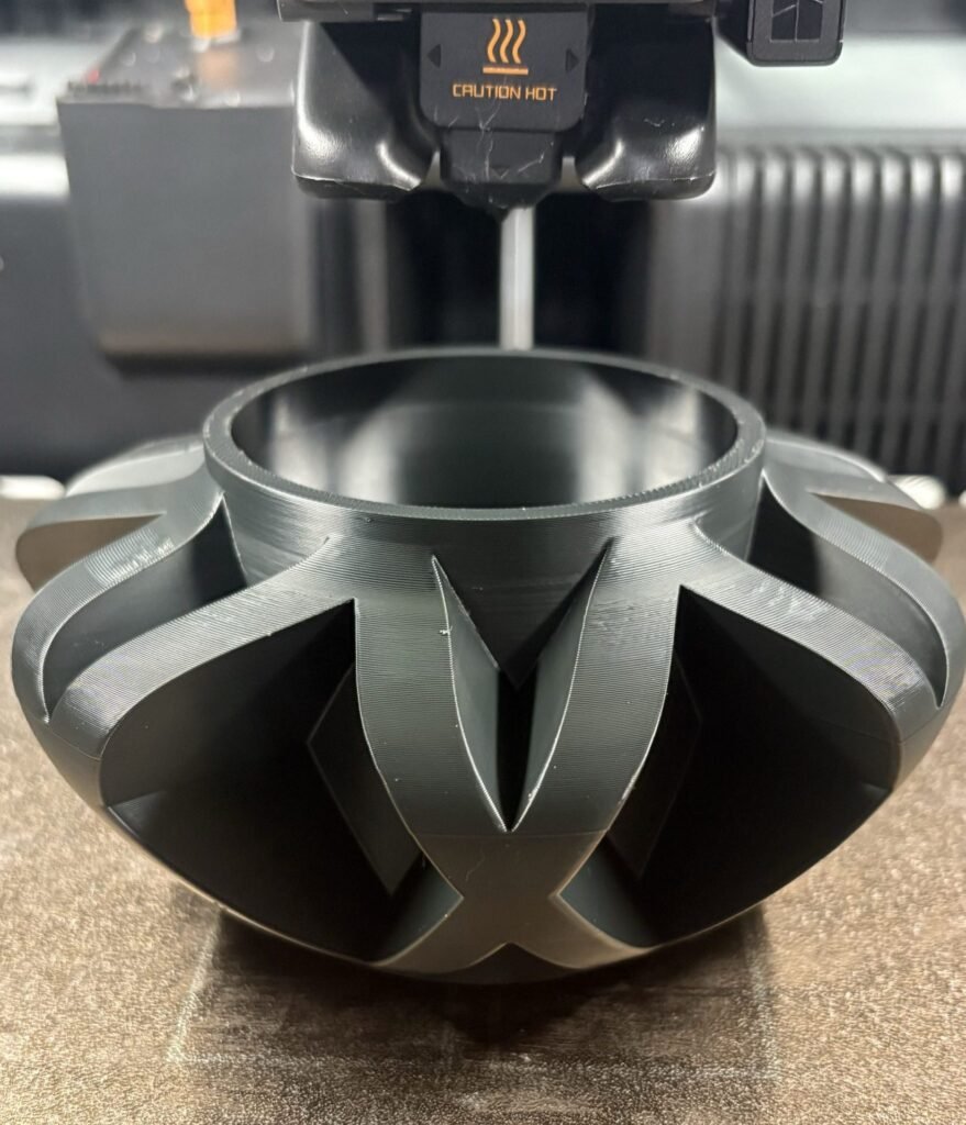 Filamento compuesto de PLA reforzado con fibra de carbono, que proporciona mayor rigidez, estabilidad dimensional y un acabado mate de alta calidad.